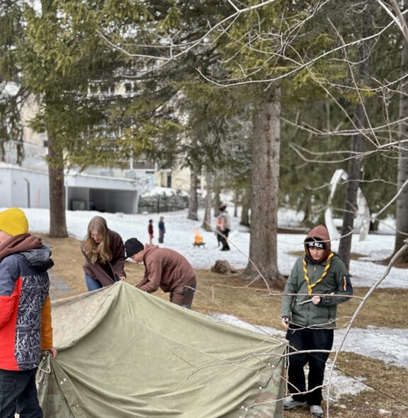 Zu Beginn sorgte ein actionreiches Spiel, das beliebte „Krawattenfangis“, für viel Bewegung und Begeisterung. Danach ging es hinaus in die Natur, wo die Kinder nicht nur die frische Luft geniessen konnten, sondern auch ihr Können unter Beweis stellten. Mit viel Einsatz und Teamarbeit gelang es den Pfadis, einen „Berliner“ (ein Zelt aus Blachen) erfolgreich zu bauen und sogar noch zu verbessern.